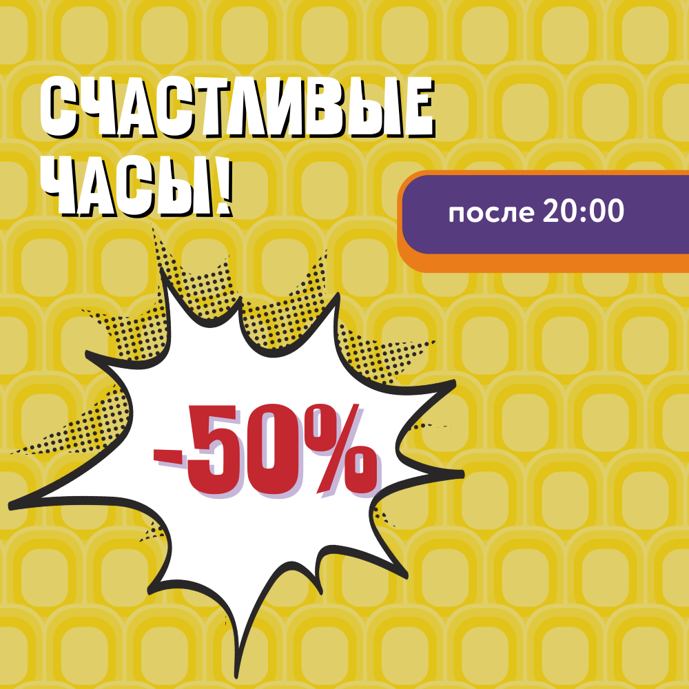 СЧАСТЛИВЫЕ ЧАСЫ! Скидка 50% после 20:00