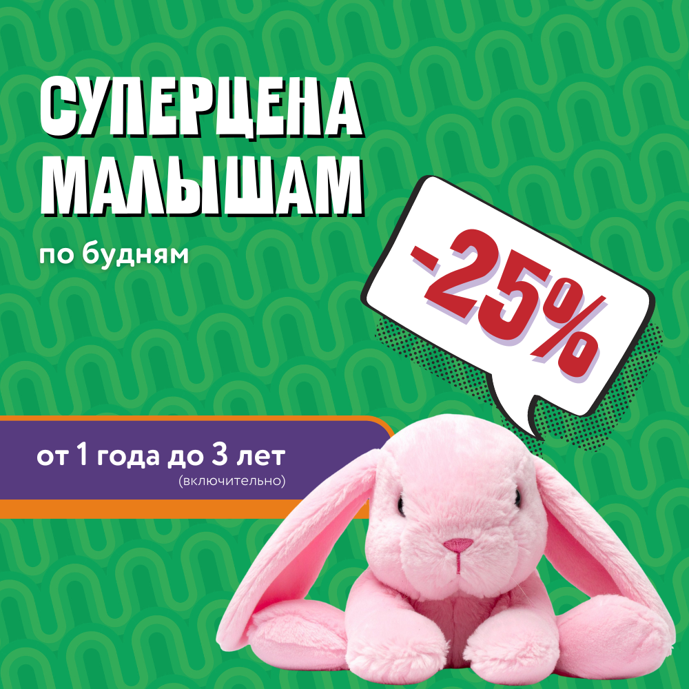 Скидка на безлимитный билет для детей от 1 года до 3 лет включительно! Необходимо предъявить свидетельство о рождении или запись в паспорте у родителей, если такая имеется